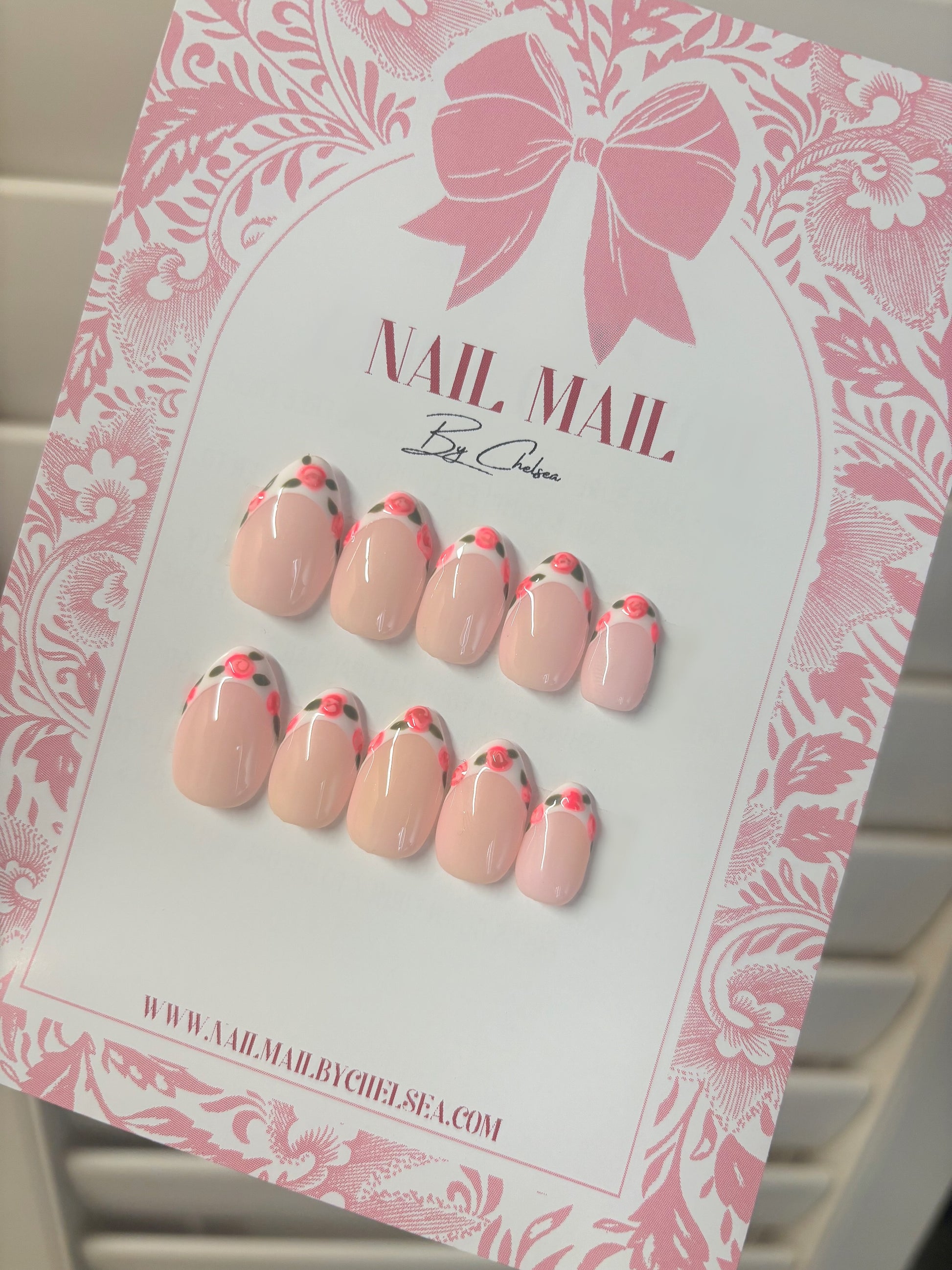 Get ready to add a touch of girly charm to your nails with our Pink Rose French Tip Floral press on nails!